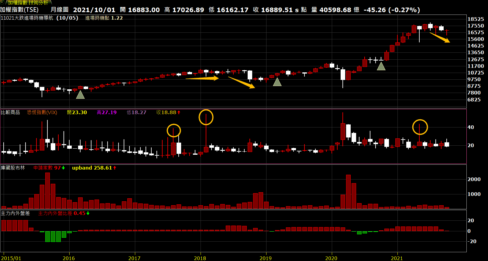 - 觀察恐慌性指數是否有大漲(超過40),然後開始緩跌的現象