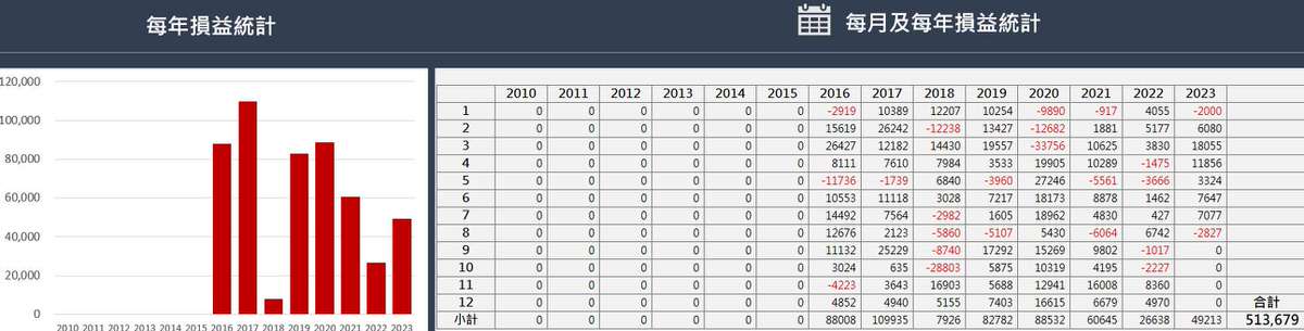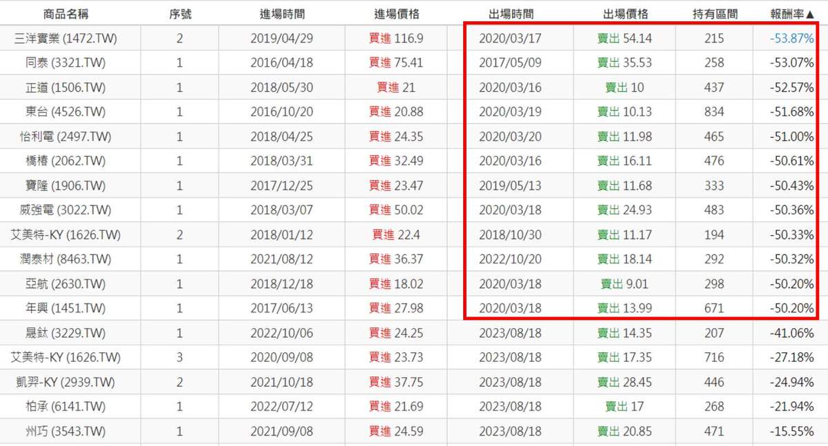 從交易明細可以看出來,有碰到50%虧損的次數,大約是12次,有9次集中在2020那個的時候,而剩下的25次虧損都尚未達到出場的程度,意思就是說,幾乎沒有遇到虧損,過去幾年,幾乎沒有遇到啥虧損的狀況,不過,這樣的策略當然會有個問題,就是可能持有時間會很長,甚至帳面上也有很多是虧的,尤其是2020/03年那段時間,應該很多人都忍不住會出場了