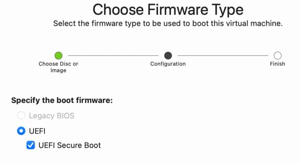 在安裝過程中,請注意Firmware type納的設定,記得UEFI Secure Boot要打勾,不然安裝時會出錯