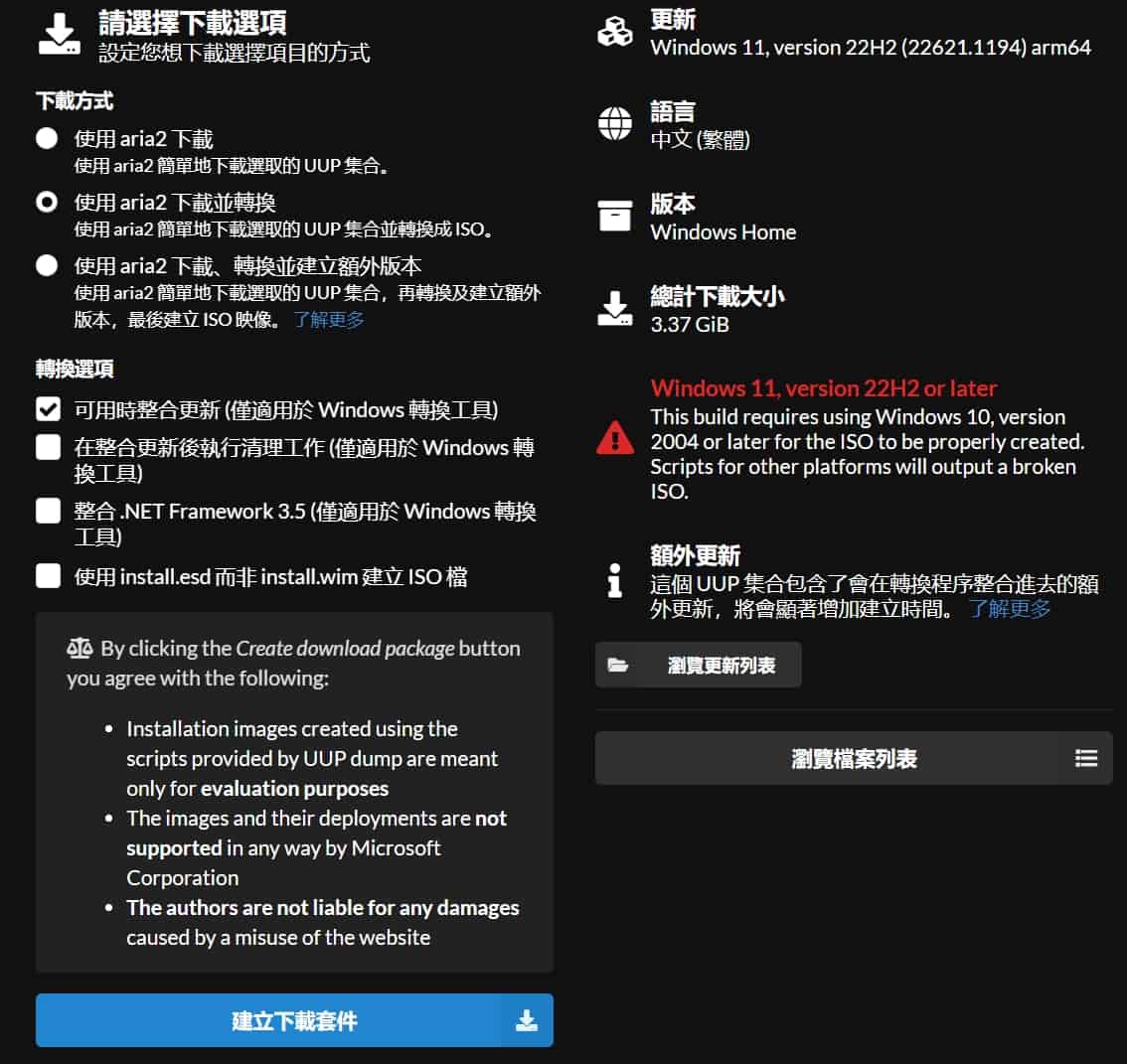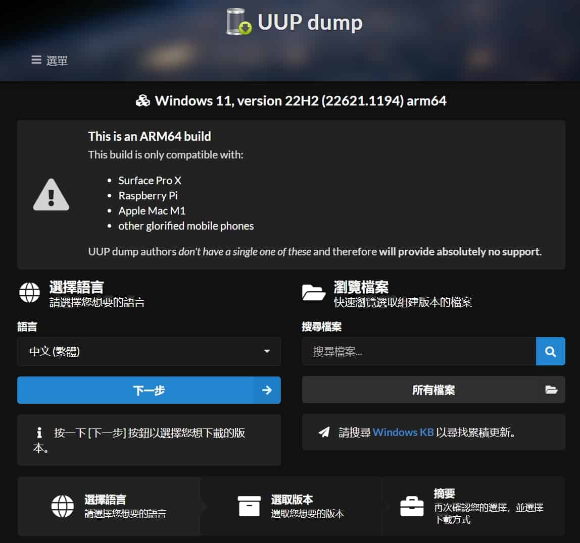 由於Mac新的m1跟m2 CPU採用的是新的架構,無法使用x64版本的win11,因此,我們需要取得win11 arm64版本,這個版本微軟現在並沒有發布正式版,但要取得,也非常容易,只要到uup dump下載即可