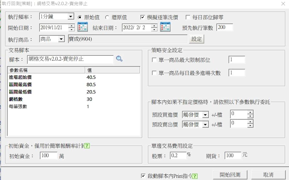 回測設定