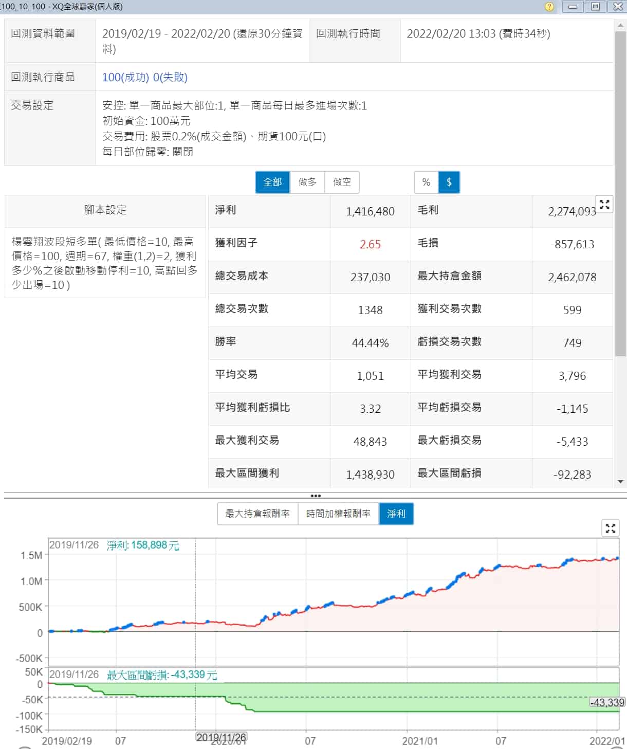 短波段多單策略回測下來,還是可以賺錢的,但投入金額還是有點大,大家可以嘗試看看調整價格區間或是只採用市值50大的,或許會有驚人的發現喔~~