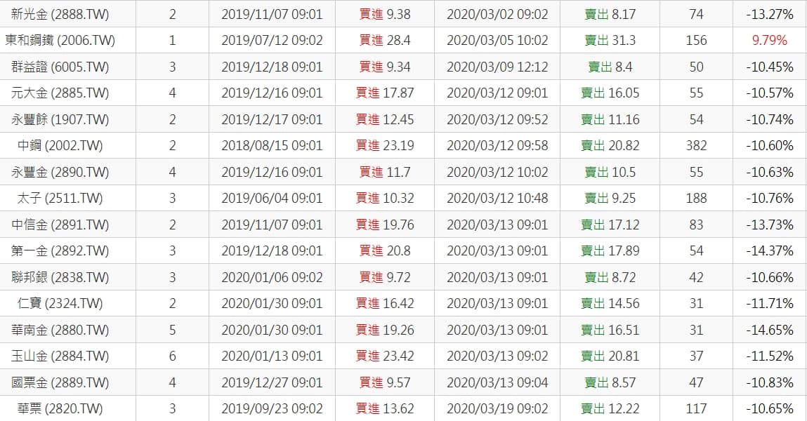 從交易明細來看,這個策略在2020/03月新冠疫情時,總共出場了16筆,其中虧損的有15筆,如果將這16筆扣掉,則勝率將會變成 (102-1)/(136-16)=84%,等於是說,沒有遇到大崩盤,這個策略的勝率可以高達84%~~~,還真是滿驚人的,平時就都開著,也能賺點零用錢,且由於都是市值200之內的股票,也不用太擔心下市,下來的話,我可能還加碼買呢,不過這種事就見仁見智了,不鼓勵啊~~