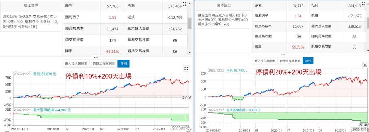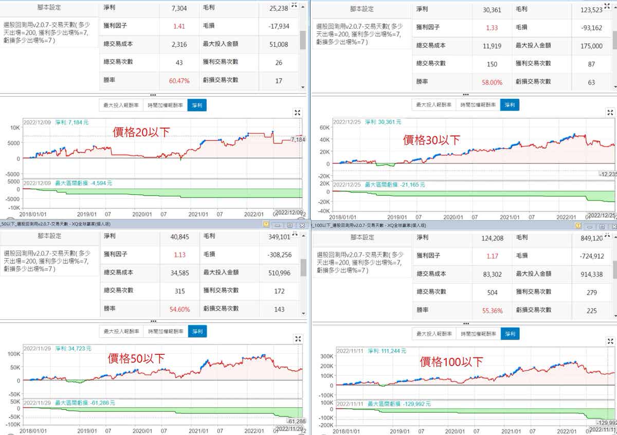 採用價格30以下的條件,並將停損利放大做比較,可以發現整體績效都有改善,且2022年的績效雖然還是虧損,但沒有像上面的回測那樣績效一路往下,應該值得繼續觀察