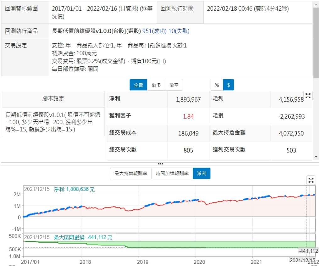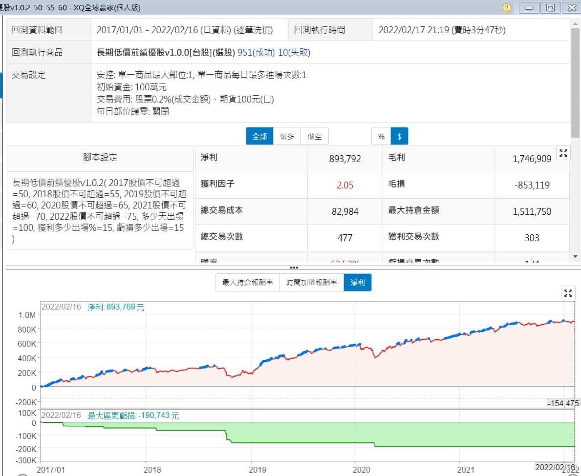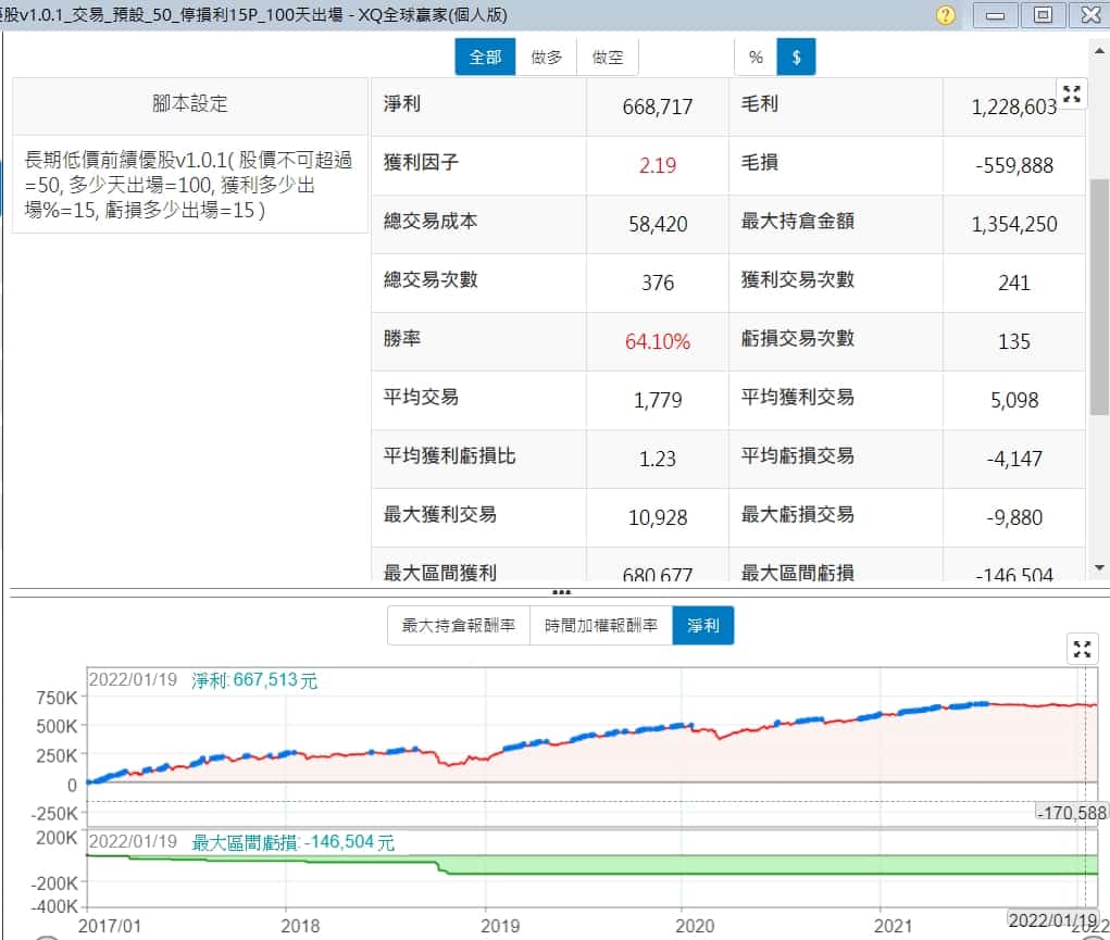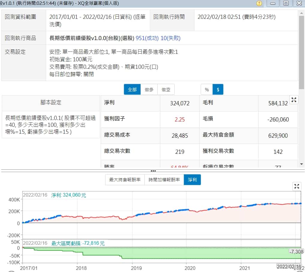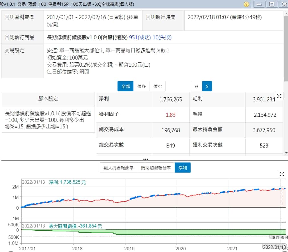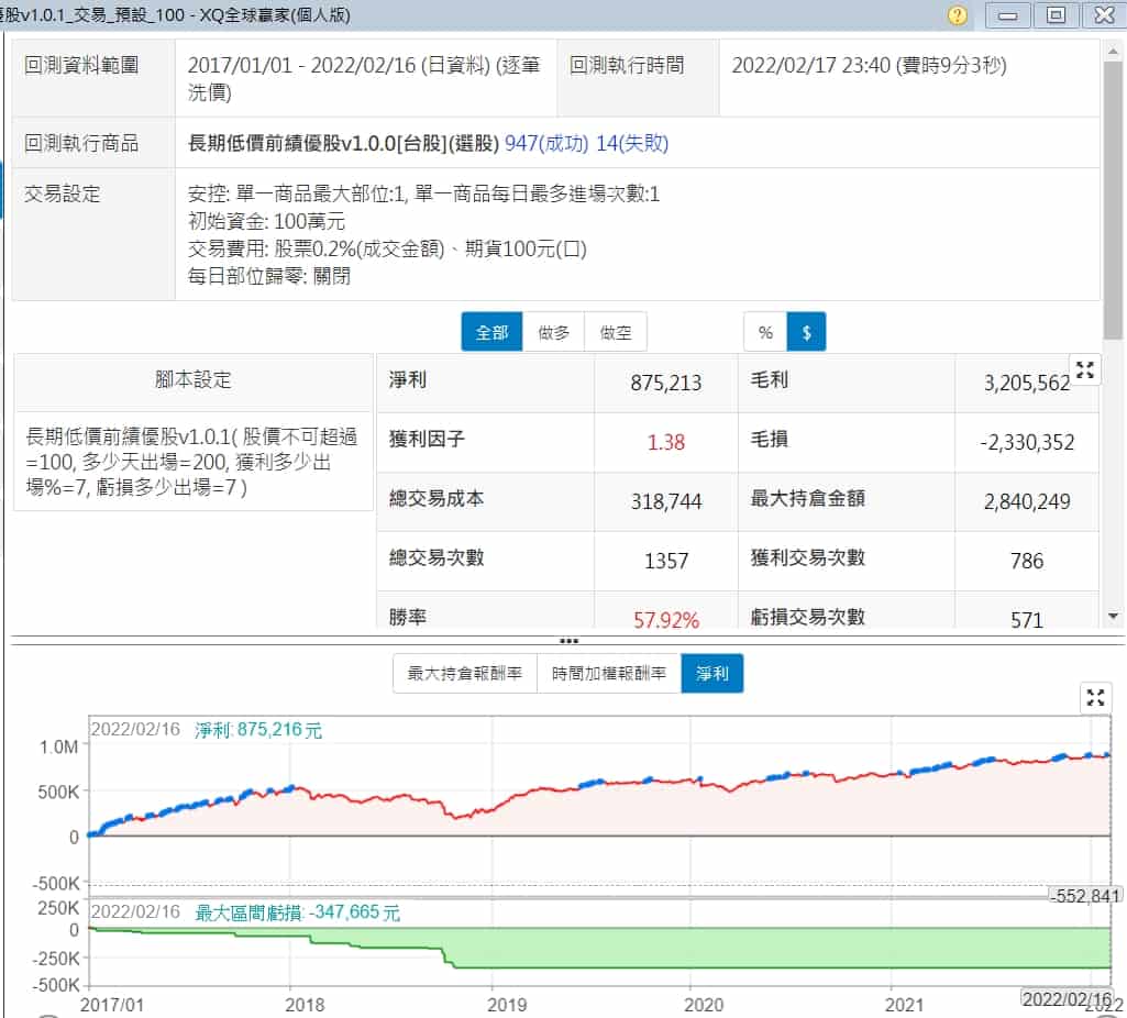 本文在回測跟優化XQ臉書提供的選股策略-我常用的選股策略系列之36~長期低價的前績優股