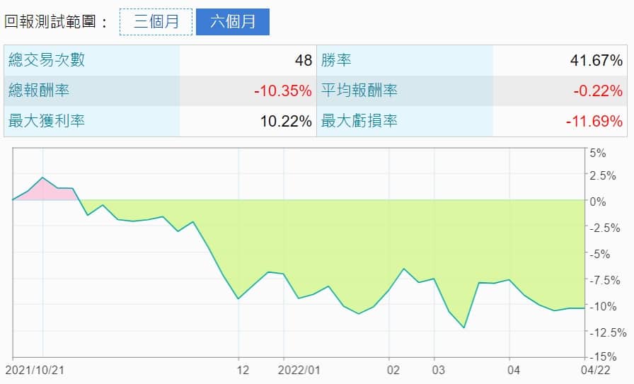 感覺上,運用技術分析的策略,股價的變化只是很短期的,且不一定能有大的漲幅,且有可能一進場先下跌,因此,用停利5%,停損10%,趕快獲利趕快出場,是不是這樣,等之後回測其他雲端策略,就知道了