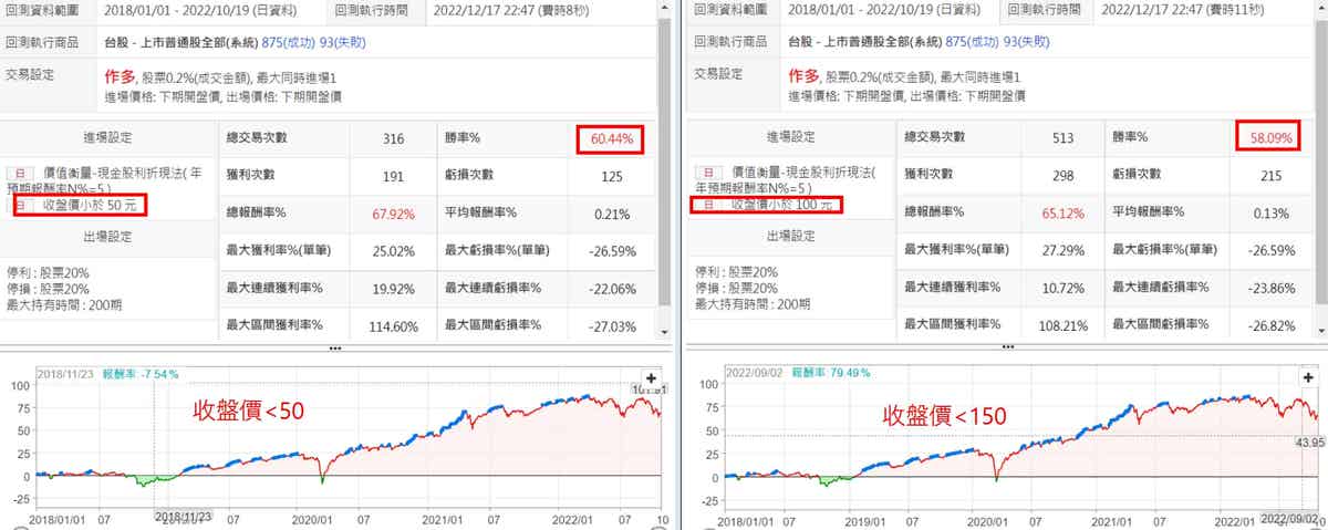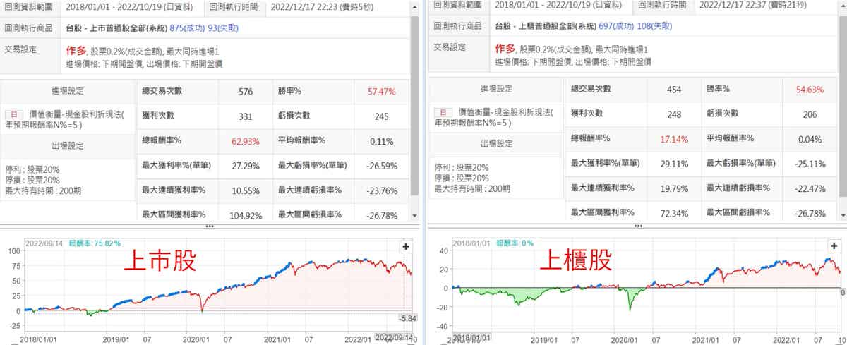 這個策略將上市櫃股分開回測後,可以很明顯看出績效的落差,所以後續的回測將只採用上市股