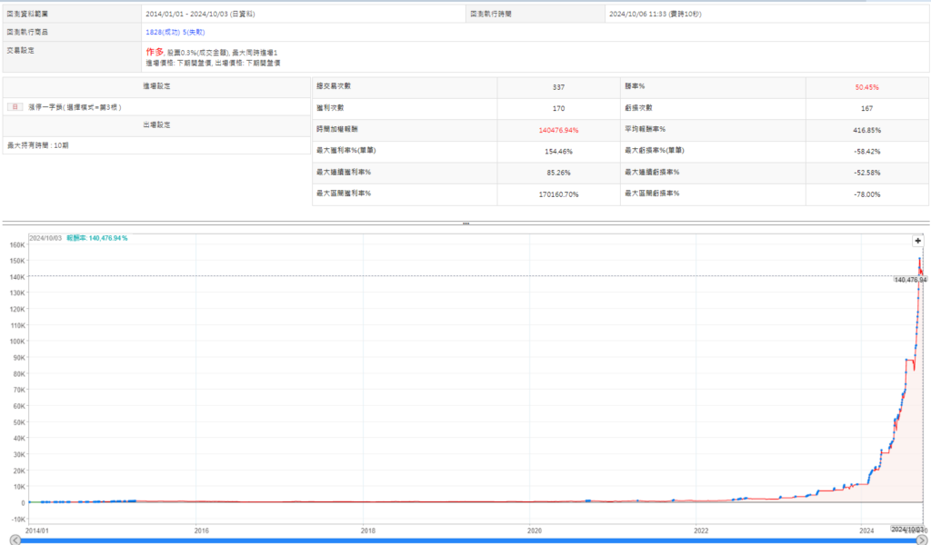如果能做到這點,就能考慮做看看這個策略。若在執行過程中再次遇到2024年的噴發行情,財富是滿有機會原地起飛的。(反之如果沒遇到2024年的大行情,也是有可能因為漏做那些大賺的交易,導致很快賠掉投入該策略的本金)