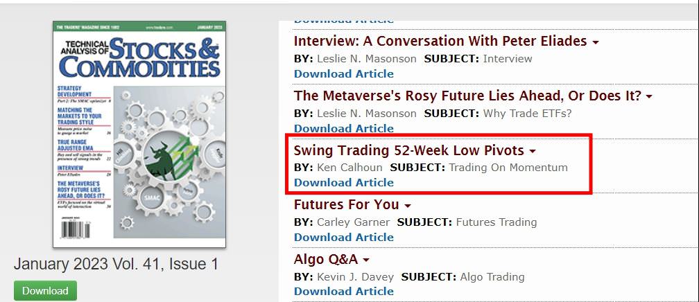 這個52週低點轉折型態在交易上的運用,是從2023年1月的Technical Anslysis of Stocks & Commodities雜誌上面的文章看來的,將這樣的概念用到台指上,似乎也是一個滿好用的指標, 很適合用來抓轉折點,因此特別寫文章來分享下