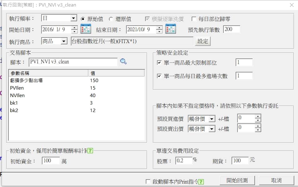 回測設定如下,有興趣的可以調整參數或是增加其他進出場條件,應該能找到更加的組合。
