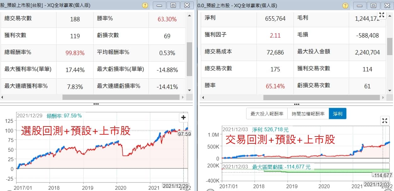 1.回測 – 預設+上市