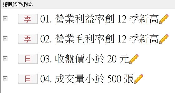 以下為選股條件的設定,商品為所有上市櫃股,停損利為15%