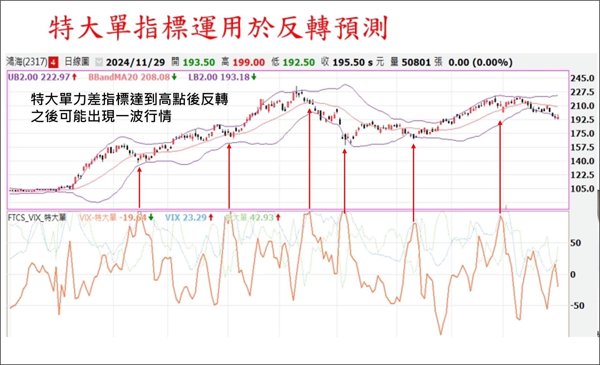 除了上面的情緒指標抓波段起漲點,市場上很多人在研究的大單、特大單策略,陳文賢老師也有喔,陳老師的特大單指標,當數值達到高點時,也是很容易出現一段漲幅,如果搭配情緒指標一起判斷,會不會是更棒的方式呢? 在您學習陳老師的兩個指標後,可以自己試試喔。