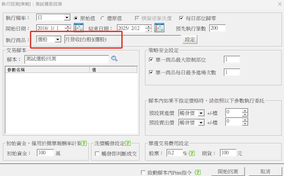 這件事在設定上比較麻煩,需要在自動交易中心另外寫進出場腳本,透過商品那加入選股策略,雖然這樣是可以執行的,但等於是把一個策略拆分成兩個部分,對於策略的維護管理都是非常不利的,在自動交易回測不同選股設定時,也很難追蹤紀錄。