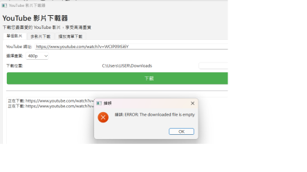 開啟執行檔 -> 輸入youtube網址 -> 選擇畫質 -> 下載