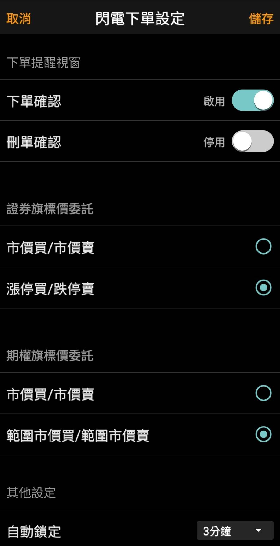 另外,閃電下單記得下單確認功能千萬不要關閉,之前在不小心睡著,結果手指點到就給我下單了,還好有驚醒,不然都不知道會買幾口了