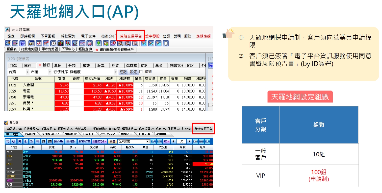 網格交易法 任何人 策略研究 任何人 策略研究 1小時 之前 更新 專注於討論網格交易,好的、不好的都可以討論,加入者必須在一星期內在討論區發新的討論或回應,潛水太久者將踢出社團 任何人 策略研究 社團管理員: Organized by Group Description 專注於討論網格交易,好的、不好的都可以討論,加入者必須在一星期內在討論區發新的討論或回應,潛水太久者將踢出社團 Leave Group Are you sure you want to leave ? 動態 討論區 文件 會員 圖片 相簿 影片 元大天羅地網 網格交易法 元大天羅地網 Posted by 查理哥 on 2025/11/10 at 15:06 元大證券聽說是最早開發網格自動單的券商,並將它稱為天羅地網 想要使用這個功能需要跟營業員聯繫,而且只能用在股票上 如果你有想要開元大的證券戶頭,可以私訊我 查理哥 回覆 1 month 之前 1 會員 · 0 則回應 0 則回應 尚未有任何回應 Log In to Reply Log in to reply. 任何人 註冊會員 我的好友 自己 任何人註冊會員我的好友自己 任何人 註冊會員 我的好友 自己 Log In to Reply Start of Discussion 0 of 0 replies June 2018 Now