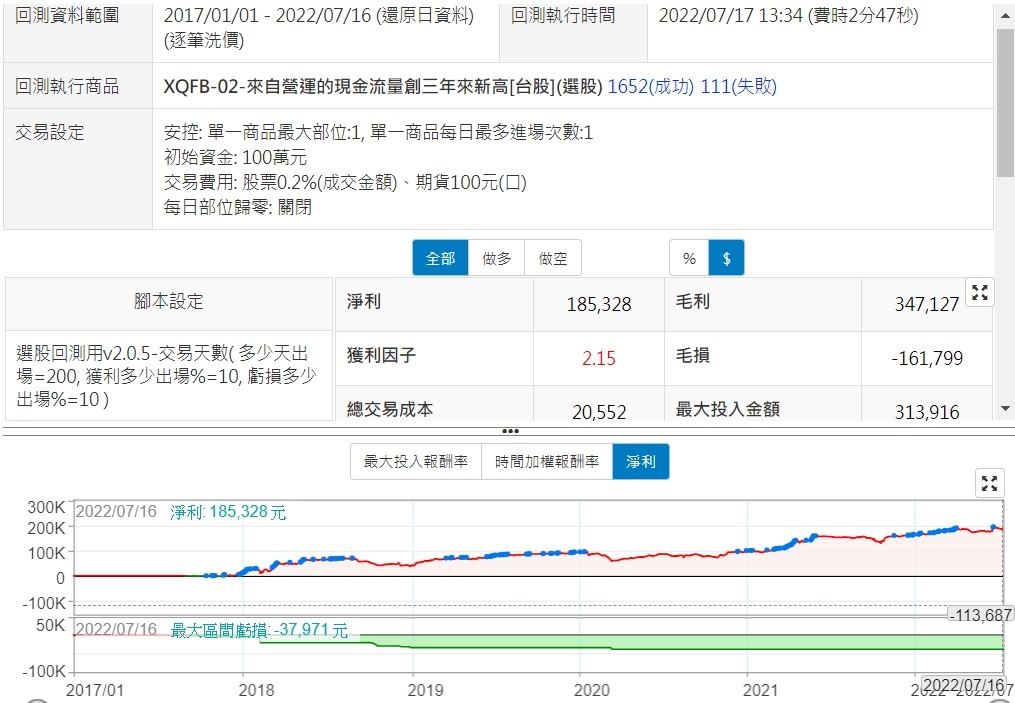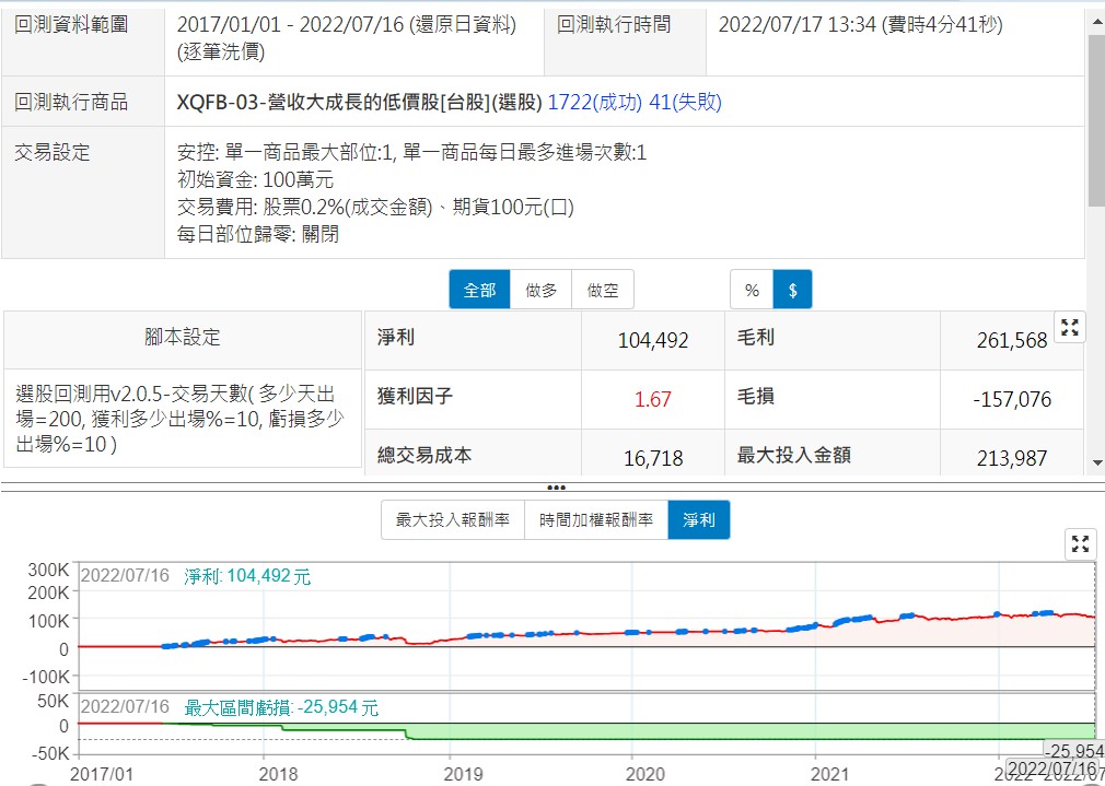 最近兩三個月,很多股票都跌了30%以上,大盤也跌了有兩成了,我會看下這幾個月策略的虧損,如果還是正常頻率進場,但虧損沒有太大,表示策略抗跌性較高,等大盤好了,應該很容易就再創新高,這樣的策略我也會放在繼續觀察的名單內