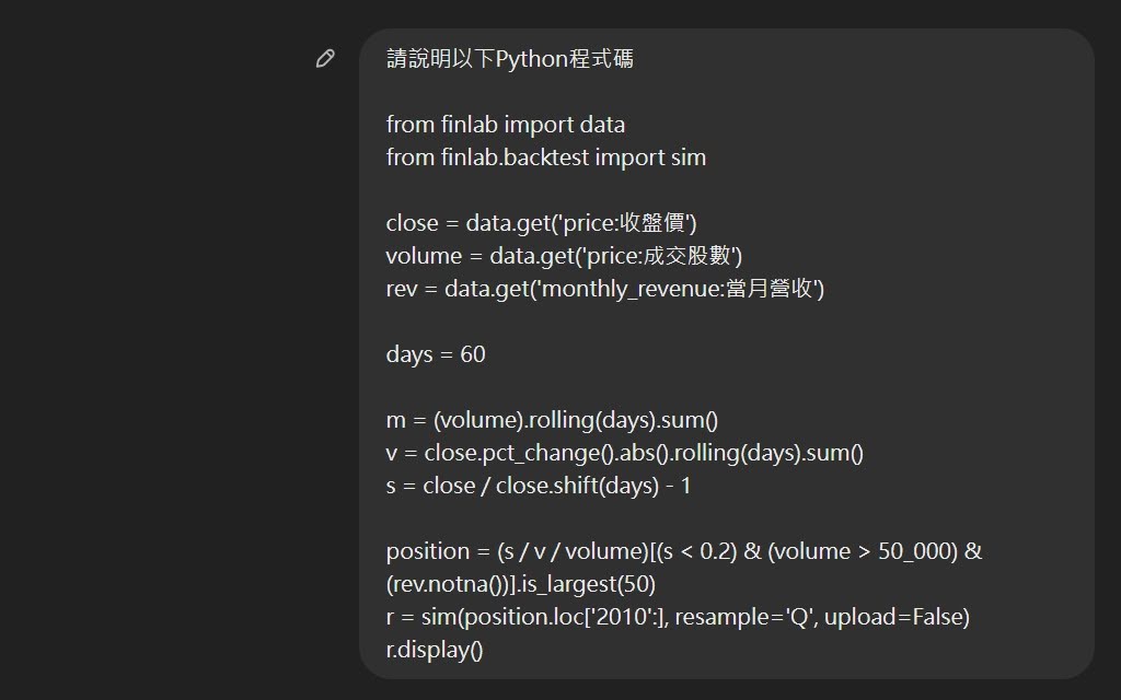 程式碼就文章裡面那段,只是用來取代回測內的進出場方式與讓價檔數的設定,但主要的進出場邏輯還是要能自己添加進去